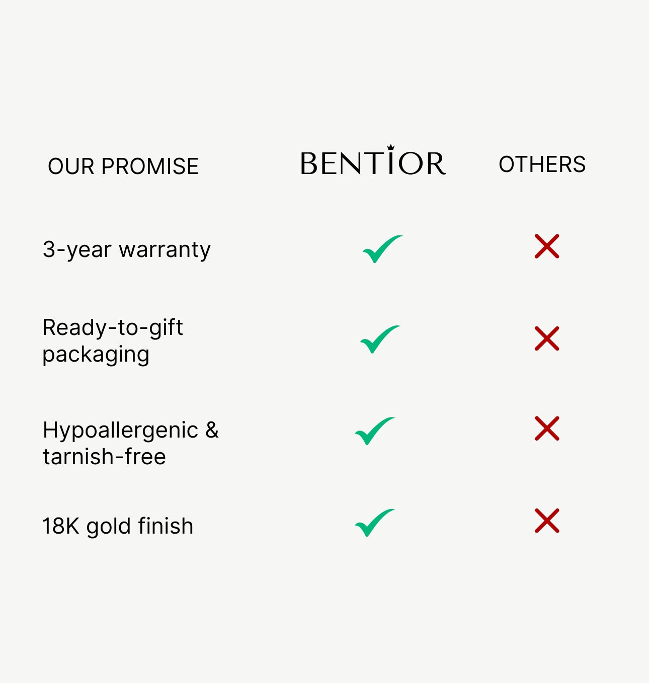 Your Bentior pieces will keep their color and shine through everything - daily wear, showers, beach, life.We're so sure of this that we back every piece with a 3-year warranty.